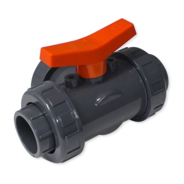 Kugelhahn PVC-U mit L-Bohrung, 3x 50 mm Klebemuffe, Mega 3-Wege-Kugelhahn, L-Bohrung, PVC-U 50 mm Klebemuffe 10 bar Grau, Farbe: Grau | Griff-Farbe: rot | Material Dichtung: PTFE/EPDM | Maß: 50 mm, Bei Kugelhähnen mit L-Bohrung kann das Wasser aus dem Zuflussrohr in eines der beiden abgehenden…